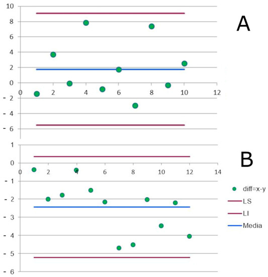 - Bland, J.M.; Altman, D.G. Statistical Methods for Assessing Agreement between Two Methods of Clinical Measurement. Lancet 1986, 1, 307–310. [Google Scholar] [CrossRef]