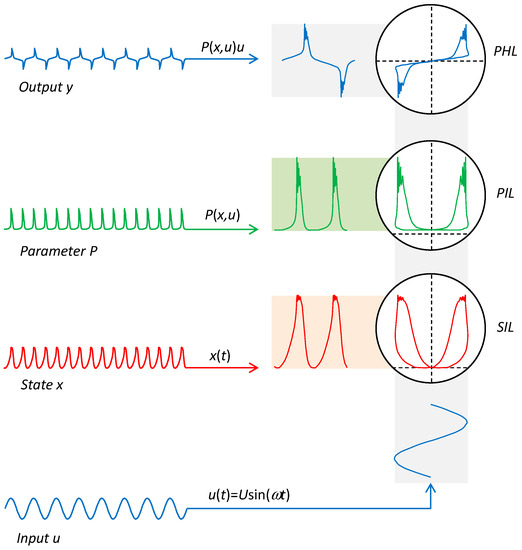 The relationships between the SIL, PIL, and PHL are shown in Figure 2. The waveforms shown correspond to the waveforms of charge (y), capacitance (P), mechanical deflection (x), and voltage (u) in the application of memcapacitive MEMS from [80].