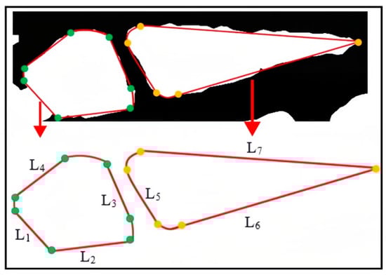 Schematic diagram of the extraction topology layout dimension. In this diagram, . is the pixel distance between the two points, which is the dimension distance between the two endpoints.