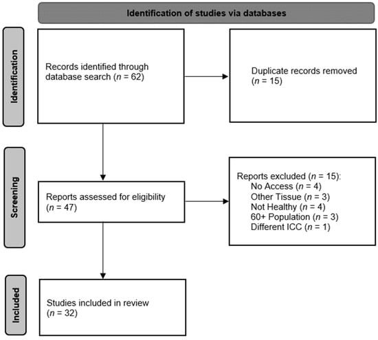 The preliminary search of information on the available objective methods for the diagnosis of muscle tone was based on the long-term specialization and research of the authors and their extensive research of the literature available. Regarding the application and reliability of the methods described, the relevant studies were identified mostly through searching electronic databases. The principal database used was PubMed. Additionally, the clinical application of Myoton was also documented using references listed on the official Myoton website. Only studies written in English were considered. The search was conducted on several occasions, the last being on 28 July 2023. A simplified PRISMA diagram [22] describing the review process of the reliability of the most frequently used methods is shown in Figure 1. The keywords used were ICC/s, healthy, and muscle in combination with of the following: CMT, MRE, myotonometer, myotonometry, MyotonPRO, SSI, or SWE. Only studies that were available in full text, tested the reliability on skeletal muscle in vivo and in a healthy population aged 18–60, and provided the ICC as an indicator of the method’s reliability were included. Three of the included studies tested multiple methods.