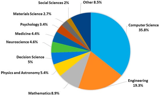 As shown in Figure 4, more than 35.8% of documents are in the computer sciences field, 19.35% are in the engineering field, and 44.9% are distributed across other disciplines.