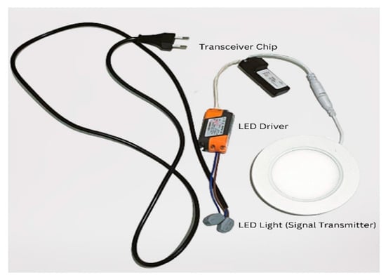 The LED bulb is a semiconductor device that emits light when an electric current passes through it. In Li-Fi, the LED works as a data transmission medium []. Each LED serves as an access point or optical base since it is driven by a Li-Fi modem or chip. The flickering of the light source acts as a binary signal that is picked up by the receiver and translated into data [].
