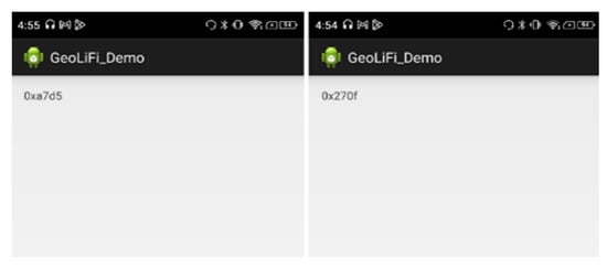 The VLC system consisted of a modified light source (LED light) and a receiver, which was a dongle on the mobile device. Each light source had its own distinct code; this information was modulated at the source, transmitted to the receiver in the modulated format, and then demodulated at the receiver’s side. The receiver’s location was initially estimated in proximity to this light source based on the transmitted information. This location was saved as (x0, y0) coordinates on the map. The LED code helped to distinguish which floor of the building and which room the light source was in, as well as the location inside the room within a proximate range, which fell within the coverage area of the LED. This initial position was later used to determine the position in collaboration with the Bluetooth-estimated position based on a calculated distance.