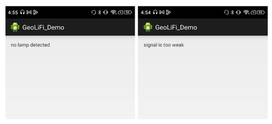 - Zhao, Z.; Wang, J.; Zhao, X.; Peng, C.; Guo, Q.; Wu, B. NaviLight: Indoor localization and navigation under arbitrary lights. In Proceedings of the IEEE INFOCOM 2017—IEEE Conference on Computer Communications, Atlanta, GA, USA, 1–4 May 2017; pp. 1–9. [Google Scholar] [CrossRef]