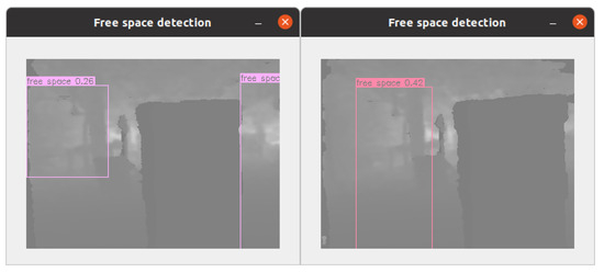 Supervised learning systems work best with fully labeled data points, meaning free space (in the form of an SFC) should be exhaustively extracted from the depth image. However, many SFCs that satisfy the abovementioned criteria would be in an arbitrary depth image of cluttered scenarios, resulting in many bounding boxes overlapping each other. This scenario of annotation is not an ideal training data point for a deep-learning object detector since it confuses generalization [34]. Thus, we label only one largest SFC per depth image. Although this approach is conservative since certain parts of the free space stay unlabeled (weak labeling [35]) in a very cluttered environment, it benefits the generalization of the deep-learning model. We will demonstrate that the result of training this dataset with supervised learning is practical enough for applications. In this paper, the deep-learning model Yolov7 [36] has been selected as the object-detection engine due to its status as the best object-detection model at the time of writing.