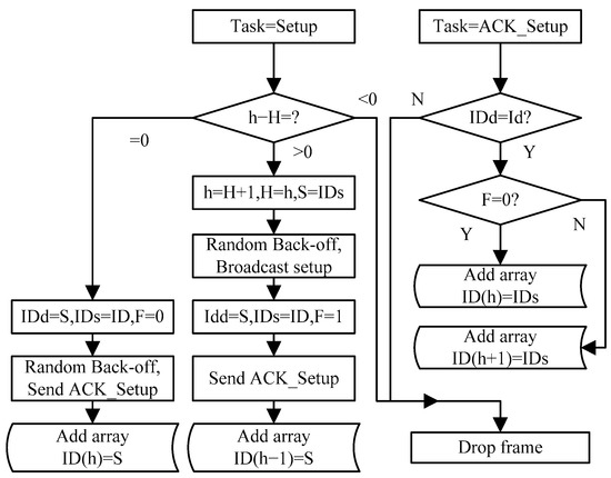 | Input: Type of task, IDs (ID number of previous node), Dest (routing destination), h (hops to the sink of this node), ID (node Identifier), Flag (the initial value is 0). | |
