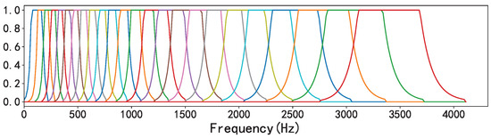 Considering that the response of the human ear to frequency is nonlinear, we converted the frequency domain of the sound signal from the standard scale to the mel scale. Mel filter banks were used to delineate the critical bands and extract the feature coefficients to represent the human ear’s perception of isometric pitch changes [22]. In the past, due to the limitations of machine learning algorithms, highly correlated features such as mel features needed to undergo a discrete cosine transform to extract MFCC features from mel features, and then the MFCC was input into a model such as the Gaussian mixture model–hidden Markov model (GMM-HMM) [23]. Since the discrete cosine transform is linear, a considerable portion of nonlinear information was lost in this process. In recent years, with the development of deep learning in speech and the fact that deep neural networks are not easily affected by highly correlated inputs, people have started to use mel features as input data for models [24]. In this paper, the range of the mel scale was set to 128.