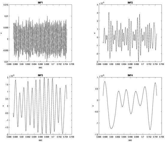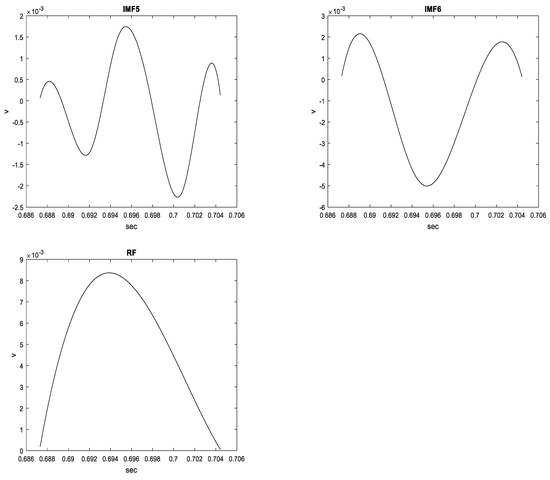 In the paper, 36 HWV samples were classified into Classes I, II, and III, which consisted of 15, 5, and 16 samples, respectively. These samples were decomposed into six IMFs and one RF using the EMD method. The first sample of Class I was illustrated. The average values of and for the Class I samples, , , and for the Class II samples, and , and for the Class III samples were all greater than 10%.