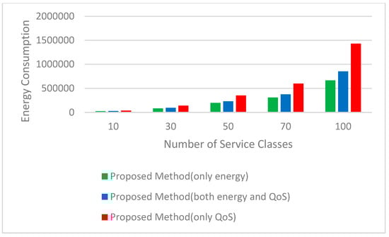 Moreover, Chai, Du [] presented an algorithm for IoT service composition that aimed to achieve better QoS while considering energy efficiency. The proposed algorithm combined QoS-aware service composition with a fast energy-centered algorithm, FSCA-EQ, utilizing a hierarchical optimization method. First, the algorithm selected candidate services with better QoS using a Customer Relationship Management (CRM) approach. Subsequently, the relative dominance concept was employed to determine the highest-quality service from the pool of candidate services. The results demonstrated that the proposed method achieved better energy consumption, selection time, and overall optimality. However, a limitation of this approach was that it did not account for the dynamic characteristics of the IoT. As a consequence, the service selection process for energy efficiency needed to be rerun frequently, resulting in a high computational cost. The proposed algorithm combined QoS-awareness and energy optimization effectively. Nevertheless, the lack of consideration for the IoT’s dynamic nature led to increased computational expenses due to frequent service selection reruns.