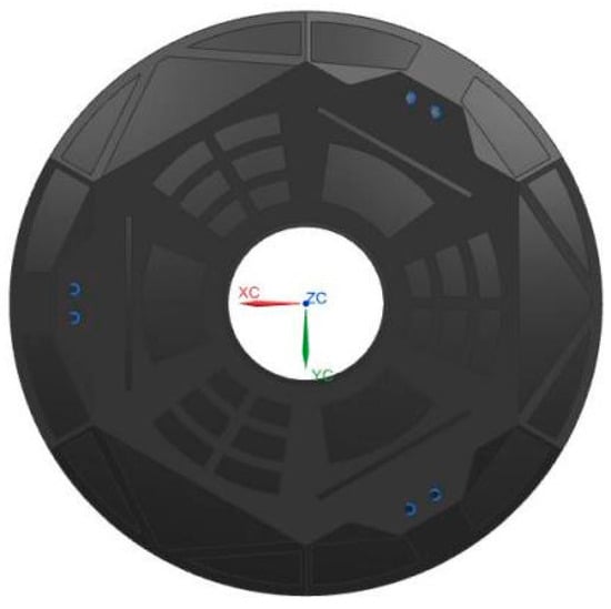In the above Equation, r is the radius of the mirror body of the aerial camera, is the mirror material density, is the acceleration of gravity, t is the thickness of the large diameter mirror body, N is the minimum number of support points, E is the mirror material modulus of elasticity and is the maximum deformation of the mirror by its own weight. The radius of the distribution position can be determined according to the empirical formula given by Hindle: