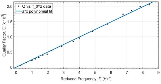 Experimental data for the Q factor are plotted against reduced frequency squared for the vertical axis.