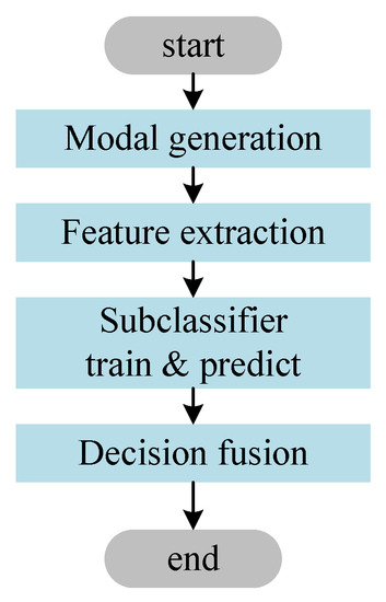 The procedure of our method. Our method is divided into four main stages: modal generation, feature extraction, subclassifier training and prediction, and decision fusion.