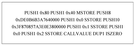 The solc compiler usually generates the operation code for smart contracts. A fragment of operation code generated using the example contract - is shown in Figure 4.