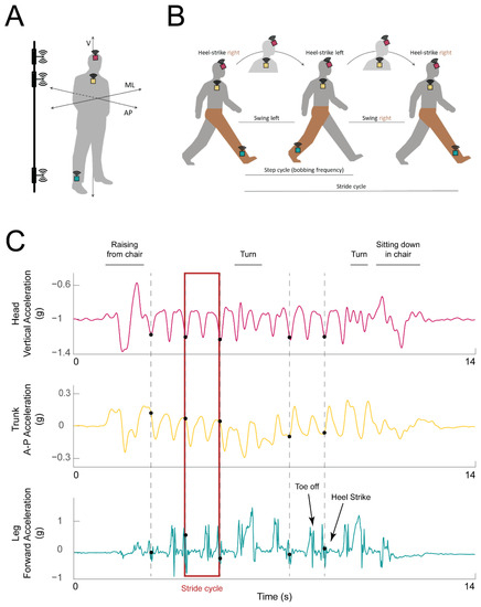 - Zijlstra, W.; Hof, A.L. Assessment of spatio-temporal gait parameters from trunk accelerations during human walking. Gait Posture 2003, 18, 1–10. [Google Scholar] [CrossRef]