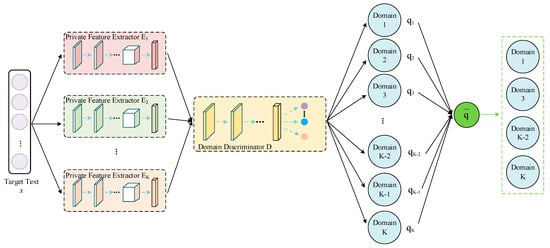 From the second perspective, Chattopadhyay et al. [12] assigned a weight to each source domain based on the conditional probability differences between the distribution of the source and target domains, but it is computationally complex. Dai et al. [13] provided a weighted strategy implemented by the discriminator through adversarial training, and the discriminator could measure the probability estimates that target instances belonged to each source domain. Fu et al. [14] calculated weights using the bidirectional Kullback–Leibler (KL) scatter between the target and source domains. Although all of the abovementioned approaches perform well, unsupervised cross-domain sentiment analysis still encounters significant challenges in terms of source domain selection and the balance between domain adaptation and private features. Previous studies [9,10,12,13,15] rarely considered the impact of source domain effectiveness on the target domain prediction, which might lower the classification accuracy.