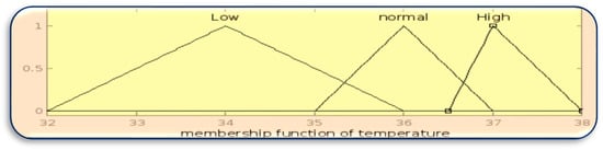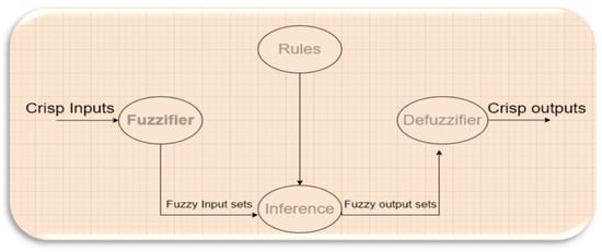 Fuzzification converts crisp values to fuzzy set values; in this stage, it is essential to draw the membership function and fuzzy sets and use the established fuzzy rules to generate fuzzy set outputs [22]. Many types of membership functions convert crisp data to fuzzy sets; however, in this design, the triangular membership function is selected as it provides accurate results and suits the design.