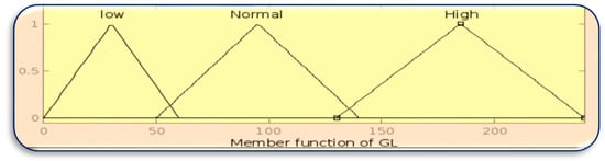 The membership function for inputs BT, HR, and GL is designed using the MATLAB Fuzzy Toolbox in Figure 3, Figure 4 and Figure 5, respectively.