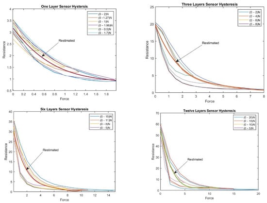 This study contributes significantly by proposing a methodology to enhance tactile sensor performance by effectively capturing the nonlinear relationship between force and resistance values. This is achieved through a synergistic combination of polynomial regression and neural network techniques. The resultant models offer enhanced interpretability and ease of understanding, compared to the intricate mathematical models such as Preisach or Prandtl–Ishlinskii, rendering them more suitable for practical implementation across a spectrum of fields including robotics, medical devices, consumer electronics, and gaming. However, the selection of the appropriate modeling technique depends on various factors, such as the specific application, the complexity of the hysteresis behavior, and the availability of data.