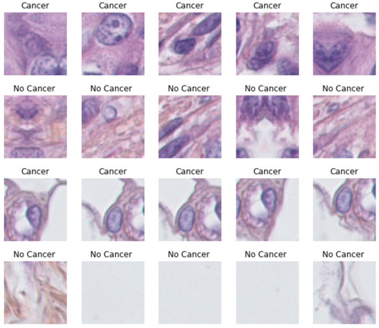 To validate the proposed model, firstly, we prepared the data (data preprocessing). This consisted of dividing each image into patches 32 × 32 in size in the U-Net model. This operation classified our data into two groups, cancer or non-cancer, based on ground truth. Figure 5 illustrates an example of this processing.