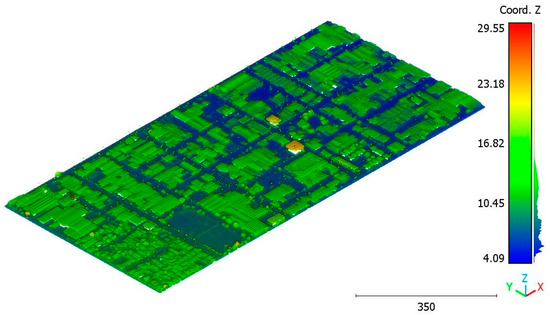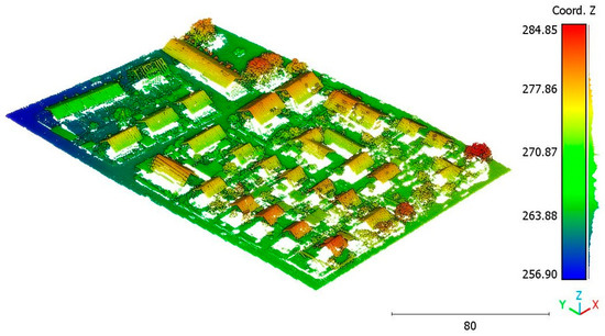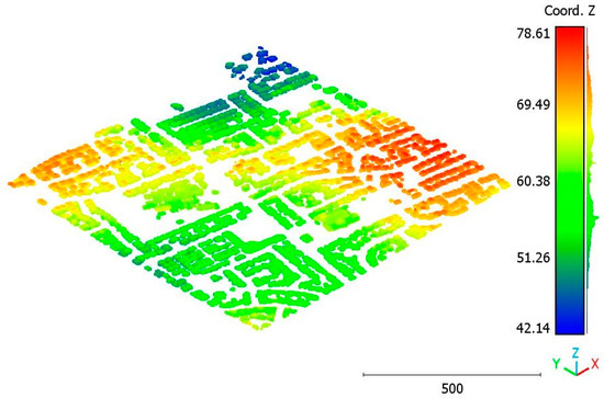 The second point cloud originates from the southern region of Queensland, Australia, near the city center (refer to Figure 3). It was collected in 2022 using a UAV platform equipped with a DJI M300 RTK and the LiDAR payload Zenmuse L1. The third point cloud is also obtained from Elvis-Elevation and Depth Mapping [38]; this point cloud will be used in Section 6 to analyze the accuracy of the proposed approach. This data sample represents an airborne scan belonging to Brisbane City in Australia. The fourth dataset used in this study pertains to the city of Vaihingen in Germany (see Figure 4), covering an area with small, detached houses and abundant vegetation. Notably, the trees associated with buildings exhibit a significant variation in quality and volume. Lastly, the fifth point cloud represents Christchurch City (see Figure 5) in the Environment Canterbury Regional Council of New Zealand.