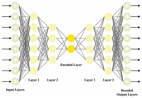 SDAE contains several layers of encoded and decoded features, generating a deeper network. All layers of the encoded features decrease the data size, and all the layers of decoded features gradually reform the data back to its original size. The intermediate layer procedure is the compressed representations, and it develops gradually towards abstraction as it keeps moving deeper into a network.