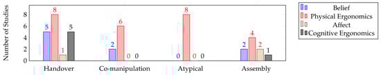 In order to identify the most common human factor type addressed in the pHRI studies that involve robots with manipulation capabilities, we formulated the following research question: