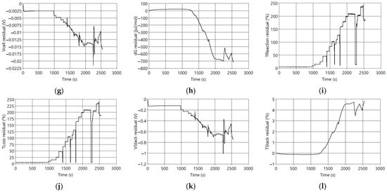 The list of considered faults has been created considering the fuel cell operation manual (see Appendix A) and the most common failures described in the literature []. Because of the cost of the fuel cell and the conservative behavior of the controller, it is not possible to physically generate failures in the system. Therefore, all faults are simulated in the digital twin validated in the previous section.