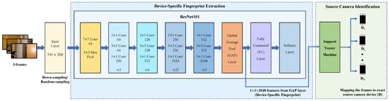 36]. This fingerprint extraction process is applied to a diverse set of videos obtained from different camera sources in the QUFVD. By testing our device-specific fingerprint extractor and source camera identifier on this input size, we establish a baseline performance for comparison. This allows us to assess the initial effectiveness of our system and validate the consistency of results with our previous study.