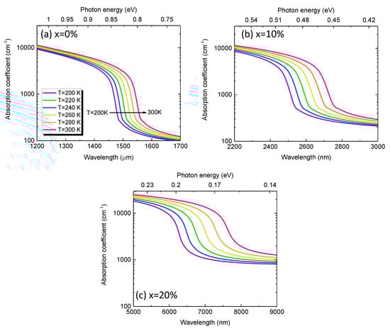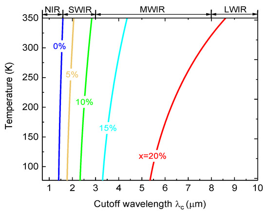 3. Temperature-Dependent Bandgap Energies and Cutoff Wavelength