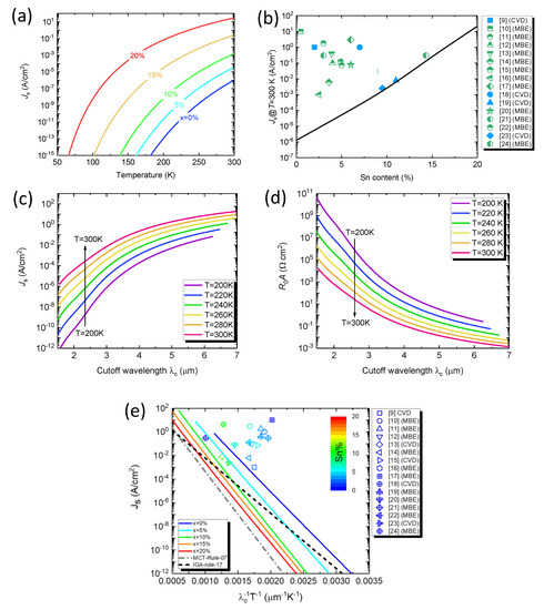 - Chang, G.E.; Yu, S.Q.; Liu, J.; Cheng, H.H.; Soref, R.A.; Sun, G. Achievable performance of uncooled homojunction GeSn mid-infrared photodetectors. IEEE J. Sel. Quantum Electron. 2021, 28, 3800611. [Google Scholar] [CrossRef]