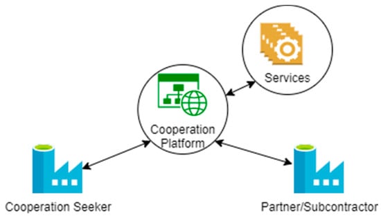 Similar to the federated marketplace use case, the cooperation platform use case consists of platforms offering the matchmaking between required and offered manufacturing capabilities, as well as the possibility to leverage IT and engineering services (cf. Figure 2). However, this use case is motivated by the search for cooperative partners in order to fulfill customer orders. Therefore, the cooperation seeker (cf. Table 2) tries to find a partner/subcontractor (cf. Table 2) able to supplement their own manufacturing capabilities in order to fulfill a contract with a customer.