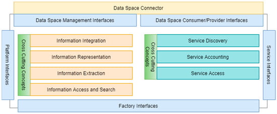 - Usländer, T.; Teuscher, A. Industrial Data Spaces. In Designing Data Spaces; Otto, B., Hompel, M.t., Wrobel, S., Eds.; Springer International Publishing: Cham, Switzerland, 2022; pp. 313–327. ISBN 978-3-030-93974-8. [Google Scholar]