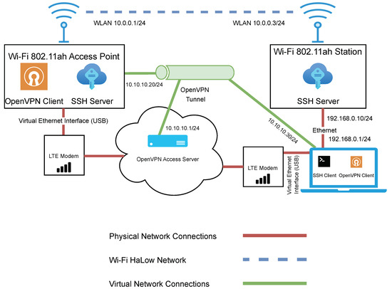 - Aleksandrovs-Moisejs, D.; Ipatovs, A.; Grabs, E.; Rjazanovs, D. Evaluation of a Long-Distance IEEE 802.11ah Wireless Technology in Linux Using Docker Containers. Elektron. Elektrotechnika 2022, 28, 71–77. [Google Scholar] [CrossRef]