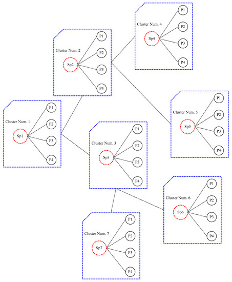 The proposed network topology in this paper is based on the supergroup. Nodes in this network are classified into two types: super peers and client peers. Each super peer is linked to a group of client peers. The super peer serves as a centralized server for a number of peers in the cluster, and communication is handled by these lead nodes. The architecture used in this article is depicted in the Figure 1.