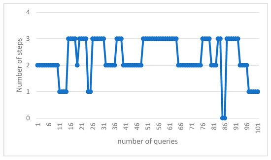 The number of scrolls required to achieve the answer in the suggested algorithm is shown in Table 10 and Figure 9. The resulting numbers are related to a few sample queries from all of the particles.
