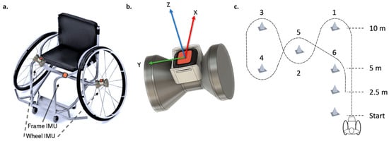 Wheelchair sports have been using Inertial Measurement Units (IMU) to measure mobility metrics during training, testing and competition [1,2,3,4,5,6,7,8,9]. This sensor has been valuable to provide metrics specific to many different wheelchair sports, such as rugby, basketball and tennis, and support training interventions and performance tracking [1,5,6]. For example, through IMU sensor data analysis and data reduction techniques, van der Slikke et al. (2016) were able to isolate key kinematic variables during match play in wheelchair basketball across competition levels. Beyond demonstrating the importance of this approach to evaluate wheelchair athlete performance, they demonstrated the value of this measurement tool to provide mobility metrics with the potential to support classification [2,6,10]. As the use of IMUs in wheelchair sports is still developing, there are considerations regarding the best sensor placement, number of sensors and analysis methods to determine accurate kinematics to support accurate wheelchair performance data [1,11,12].