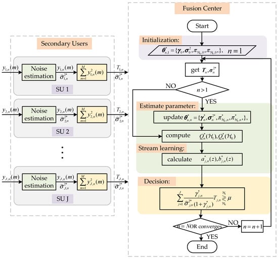 The flowchart for the proposed method at the secondary users and fusion center.