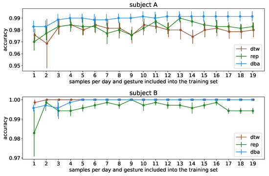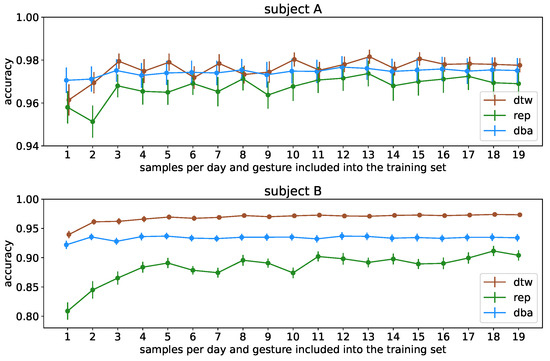 Nevertheless, as it has been shown that the number of reference samples can be significantly smaller than the reference datasets we acquired while still preserving the presented high accuracies, this approach is still practical as long as the system is set up with such subject-specific data before usage. An analysis similar to [20] could also be additionally helpful to identify gestures that allow for multisubject use of reference recordings.