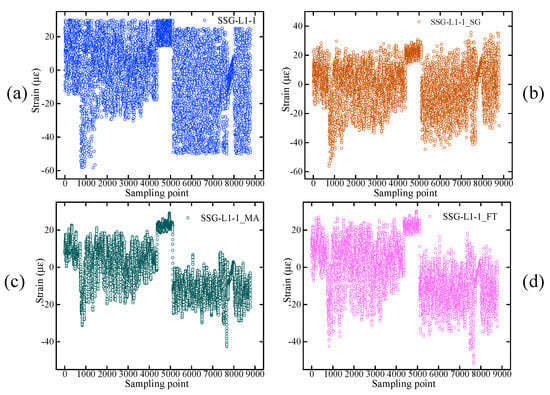 Figure 8 shows three smoothing results, with Figure 8a–d representing the raw data, SGS, MAS, and FTS results, respectively. Compared to the raw data, SGS data does not lose too much detail, while MAS and FTS data differ considerably from the original data, such as in the signal sampling points (0, 1000) and (7000, 8000).