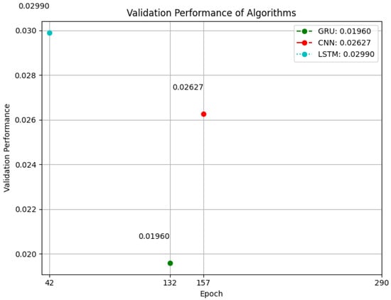 As inputs to the proposed model, the first layer of GRU is responsible for processing the inputs and generating the outputs. The outputs from the first layer are transferred into the system for the second layer. Similarly, the outputs of the second layer serve as inputs for the third layer. Using an activation function allows for the generation of the GRU model’s final outputs. We use two activation functions that are most often utilized, namely the sigmoid and , which are presented as examples in the work [43,44,45].