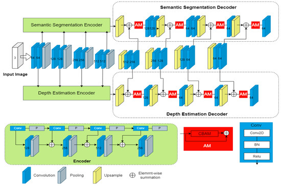 - Zhang, Z.; Cui, Z.; Xu, C.; Jie, Z.; Li, X.; Yang, J. Joint task-recursive learning for semantic segmentation and depth estimation. In Proceedings of the European Conference on Computer Vision (ECCV), Munich, Germany, 8–14 September 2018; pp. 235–251. [Google Scholar]