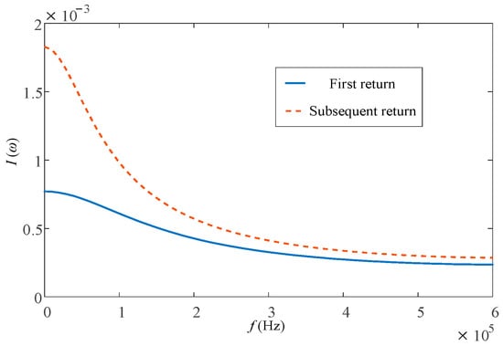 The Heidler function model is used to simulate the lightning current source. Heidler function models with waves of 2.6/50 μs and 0.25/100 μs were used to simulate the first and subsequent return lightning currents, and Fourier transform was performed on them. The spectrum curve is shown in Figure 2. As can be seen from Figure 2, the frequency band of lightning flow is relatively wide, but the amplitude of lightning flow decreases with the increase in frequency, and the amplitude is mainly concentrated in the low-frequency part.