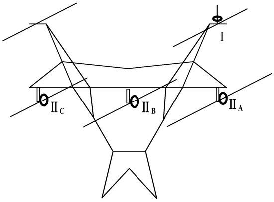 This structure composed of two kinds of sensor units is called the POCT. One is set on the lightning rod on the tower top in the form of the direct measurement of the lightning current, which is used to measure the full waveform of the direct lightning strike. This paper calls it the waveform sensor unit, and its measurement position is called the tower top measurement position, which is represented by “I” in the diagram and the formula corner mark. The other is set on the three-phase line in the form of a remote measurement, which is used to measure the key parameters of the lightning current. It is called the parameter-sensing unit, and its measurement position is called the line measurement position. It is represented by “II” in the diagram and the formula corner mark, and the parameter- sensing unit on the I-phase of the line is represented by IIi (i = A, B, C).