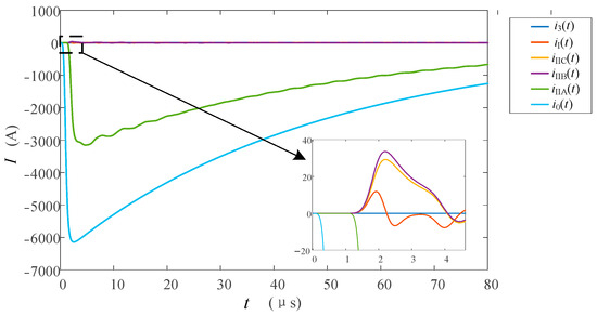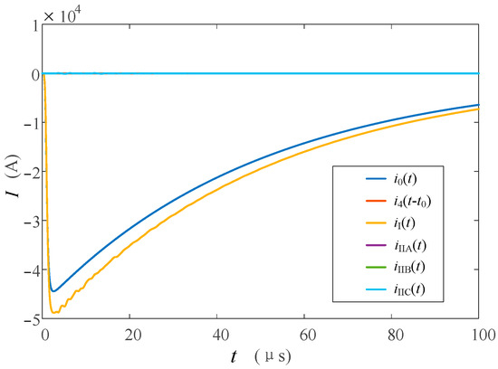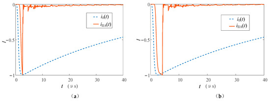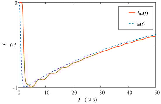 iIIA(t) and i0(t) are normalized, and the waveform comparison is shown in Figure 23. As can be seen from Figure 23, the iIIA(t) waveform will be affected by uj″(t) to produce a small amplitude fluctuation. However, it is very consistent with the waveform of i0(t); especially, the leading part of the current wave is very close.