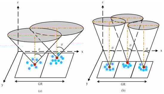 The size of the voxel grid should be determined based on the selected θ angle. For example, when the terrain is flat and the θ angle is large, as shown in Figure 5a, increasing the voxel size may be appropriate. Conversely, as depicted in Figure 5b for sloping terrain with a decreasing θ angle, reducing the voxel size accordingly is necessary to ensure less incomplete filtering.