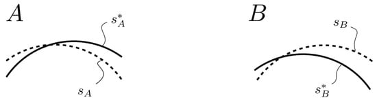 Based on Equation (A2), it becomes clear that the more critical case arises in each case with the upper operation sign. Accordingly, only this one will be considered in the following. Utilizing Equation (2), the strain deviation can be expressed as follows: