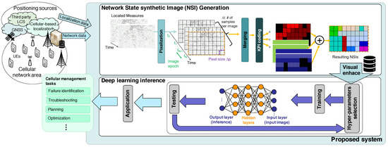In NSIs, the colors or intensities can represent varying measured radio values, as well as indicators such as dropped calls or data throughput. Once synthesized, these NSIs can be used to train the CNN to classify regions into categories such as “good coverage”, “poor coverage”, “interference”, or “congestion”. Image classification DL algorithms can identify patterns beyond human perception, potentially highlighting areas of concern. An essential use case involves using historically labeled data to recognize network issues during a past failure or the preceding hours. This predictive capability enables the algorithm to provide proactive alerts to prevent network failures.