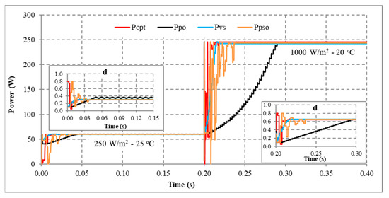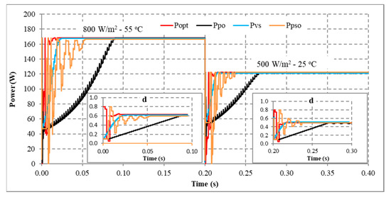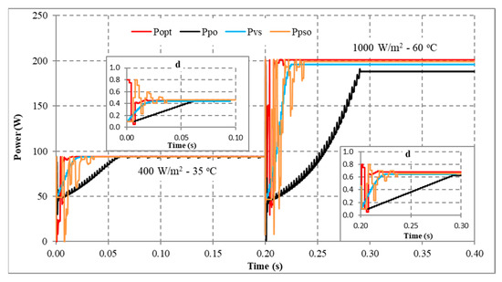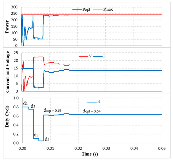 However, output parameters are measured and stored based on the duty cycle value at specific times. It is necessary to determine the value of d at 0.4 Voc of PV modules according to Equation (21).