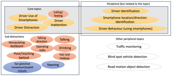 The aim of this paper is to extend a previously published preliminary literature review of scientific peer-reviewed published work on driver distraction using smartphones [23]. Even though there have been several other literature reviews published on the topic of driver distraction, in general (e.g., [2,5,6,24]), and driver distraction monitoring (e.g., [3]), none of them have exclusively focused on distracted driver monitoring with smartphone-based systems.