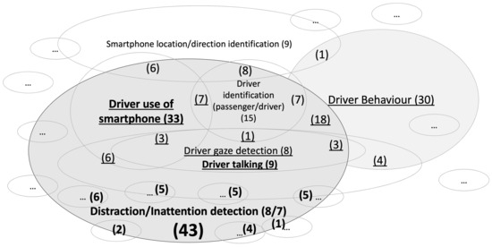 Research has been exploring the use of the smartphone and integrated smartphone sensors as a basis for the development of app-based driver monitoring systems [47,48]. Smartphone-based driver monitoring systems would have the added value of being able to retrofit older vehicles with innovative camera and sensor technology, as they do not rely on the vehicle’s sensors and actuators [49,50]. Researchers have already demonstrated good accuracy in detecting distracting tasks from recorded images [48,51]. In addition to focusing on the original distraction monitoring challenge, there are several sub-topics addressed by the research, including driver detection (based on smartphone location), gaze [52], or head pose detection [53], or the detection of different driver behaviours, such as driver inattention [49], drowsiness [54], or risky driving [46].